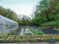 都筑区池辺町の静かな山あいでとってもひろーい花畑を営まれている田丸さん。季節の花々があふれんばかりのその一角でゴーヤーの苗を栽培してくださいました。