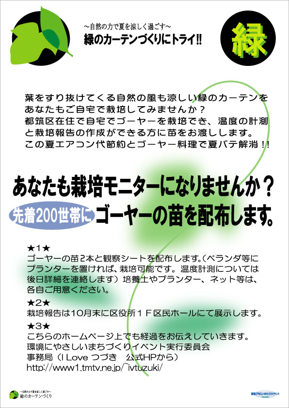 > 環境まちづくりイベント2009(製作中) > 緑のカーテンづくりトップページ >