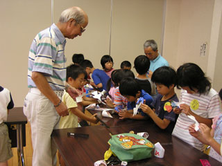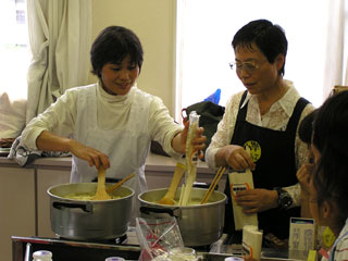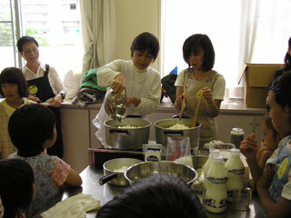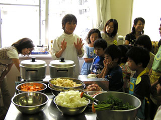 | 講師の西岡さん。。。子供達も熱心にお話に耳を傾けました。おいしいのできるかな〜。 | |