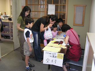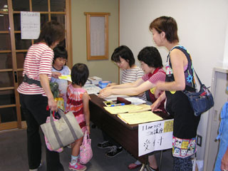 | 受付のようすです。どんどん子供達もふえてきました。楽しみだねー。 | |