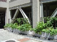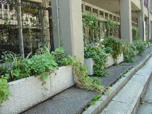 ![]() 市庁舎沿いプランター たくさんの種類の草花が植えられている。 |