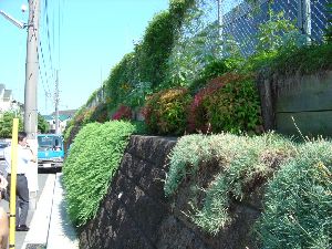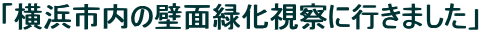 | 2004年7月8日 横浜市内の壁面緑化の視察に行きました。 案内役は、緑政局緑化推進課渡辺さん。この道30年?のベテランです。 参加者は、 環境保全局まちづくり課松本係長 都筑区役所企画調整係石渡さん I Loveつづき 川本・中・岩室 猛暑の中、市庁舎周辺から六ッ川そして三ツ沢にて使用植栽・手法・技術など詳しく 説明いただきました。 |