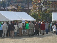 訓練の合間にテントを訪れる人たち。