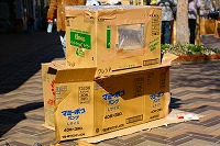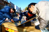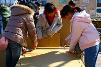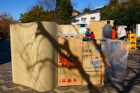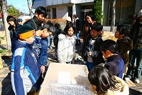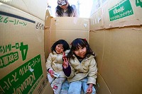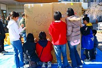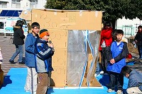 できたおうちの温度を測りました。 設計図で作った家は30度まで上がり、中は上着を脱ぎたくなる暖かさです。 またそれ以外の上でも軒並み25度以上ありました。大成功です。 このあと、みんな中に入ったり絵を描いたりして遊びました。