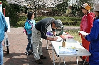 受付となった早渕公園では花見をする人がなごんでいます。