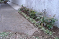 消すだけでなく、落書きされない工夫をするということで、ヒイラギナンテンと斑入りヤブランを植えました。