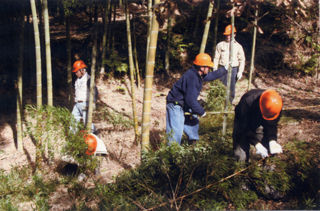生態系と雑木林の保全講座。炭焼き体験や竹の間伐、畑作業のコツ等も紹介しました。