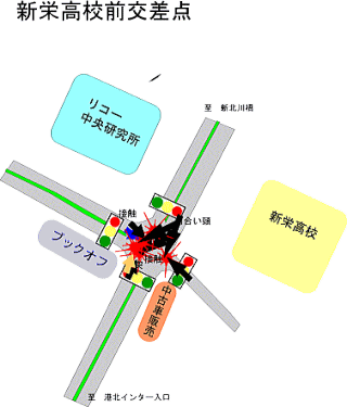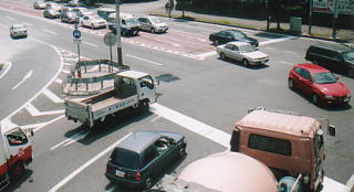料金所から交差点までの距離が短いので、交錯する車をハラハラしながら見ていた(歩道橋から良く見える。)のですが、意外と事故は起こらないもので、みんなが注意しながら運転すれば、事故って起こらないんだなと、感心してしまいました。+スピードもでていないしね。