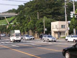 東西南北に右折信号がある事からも、交通量が多そうな交差点。今は特に、すみれが丘方面から来て右折する車が多く、後続の車がイライラして、クラクションを鳴らす様子も見られる。とにかく渋滞するのです。こういうことが(イライラと、あせり)事故に繋がっているようだ。