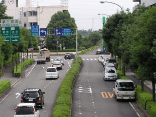 新栄高校方面から荏田に向かって走ると、さえぎる車もなく(だいたい渋滞していない。)アクセル全開で、走ってしまうのですが、この新横浜元石川線は随分前から開通している道路のため,中央分離帯の木が大きく育っているせいもあるのか、薄暗い感じ。