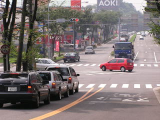 緑産業道路の一角ですが、この辺は当たりは今、道路拡張工事の真っ最中で、道がデコボコしているうえに、交差点周辺が、ごちゃごちゃしている。