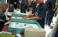 乾杯のあと、都筑カルト王[TSUZU-KING]を決める、 都筑区クイズで見事、王に輝いたのは、田中良三さん。 賞状が贈られました! 最後まで残っていた、青葉区の小池さんとジャンケンになりました。あやうく、都筑区民が全滅するところでした。 (小池さん、すごいですね!) パーティ担当の「I Loveつづき」としては、みなさんのおかげで大成功だった、と自負しています!! そうそう、オードブルは今回、えだきんのパリジェンヌさんにお願いしました。少ない予算で大変無理していただきました、ありがとうごさいました。 運営委員のみなさんもおつかれさまでした。 |
