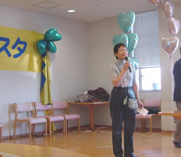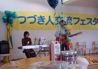 ![]() パーティを盛り上げる演奏もあり。 歌っているのは広井茂さん。 |