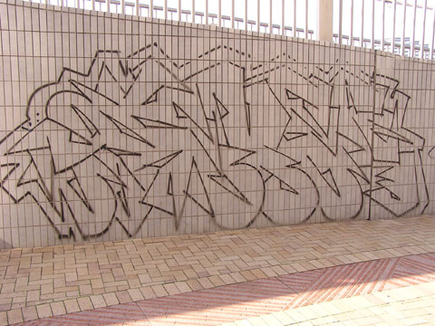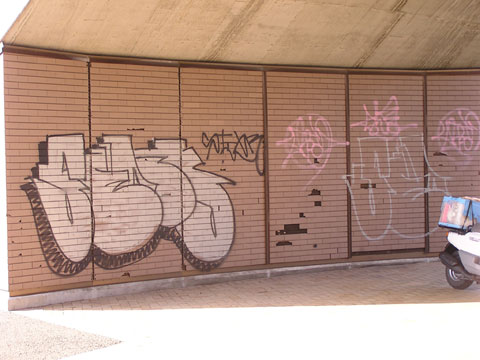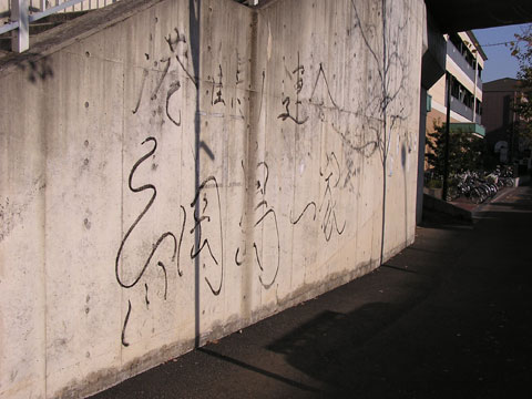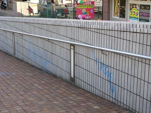 北山田一丁目センター前バス停付近の落書き