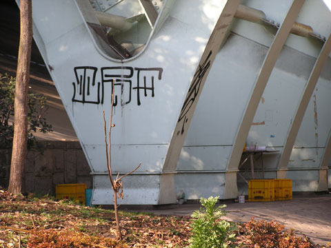 くさぶえの道・青が渓橋の落書き