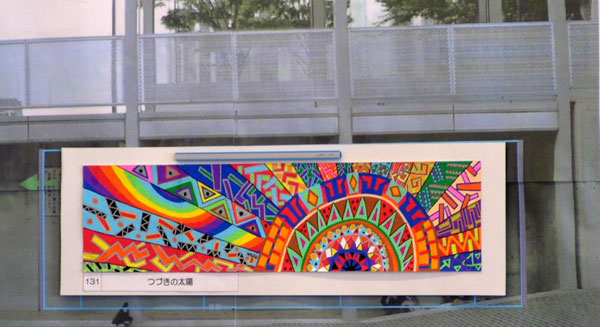 ![]() 審査途中「つづきの太陽」。タイトルが下に読める。 ところが・・・ 審査会の途中で主催者側から、この絵が本人が描いた方向で見てみようと いうことになり、さかさまにしたところ、虹の向きといい、ふりそそぐ太陽の感じとしい、 やはり本人の言うとおりではないか?と日比野さんもおっしゃったので、 記者会見ではよく見ると天地が逆になっている。。。 したがってタイトルがさかさまになったままでOKなのだ。 そして・・・(下へつづく) |