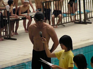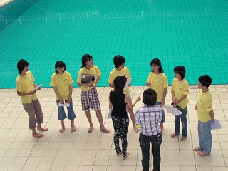 プールで泳いでいた人も真剣に見ています |
