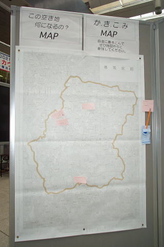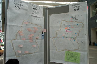 地図展を見に来て下さった方に、こんなものができたらいいな、を書き込んでもらいました。